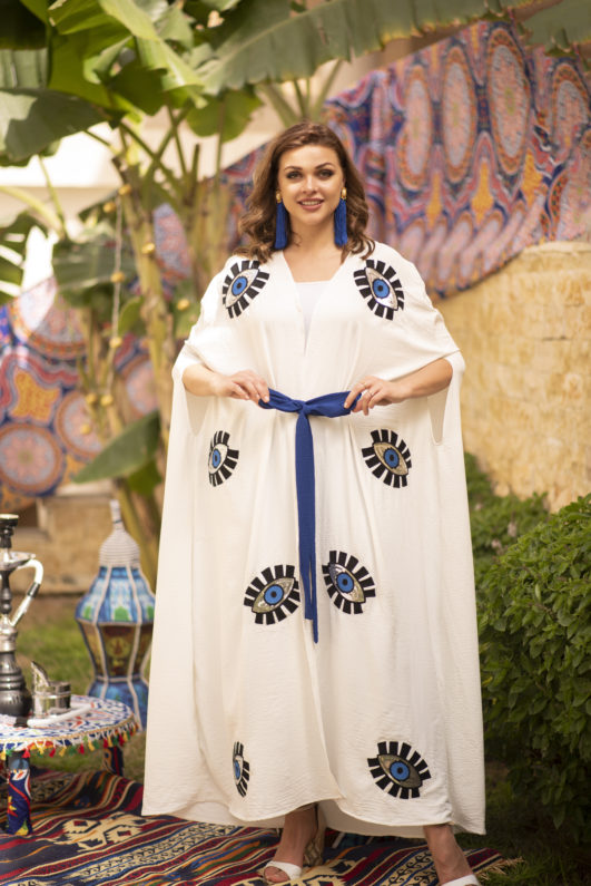 Be the first to review “Evil Eye Embriodery Off White Kaftan”